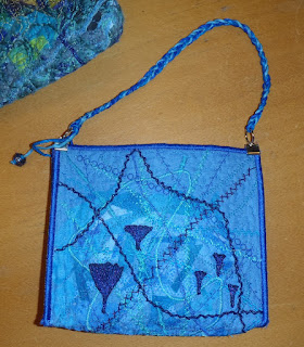 Annelise er rigtig dygtig til broderi og alternativ brug af garn, bånd og stof. Hun er blevet vild med at lave tasker og hun havde nogle fine ting med at vise frem: